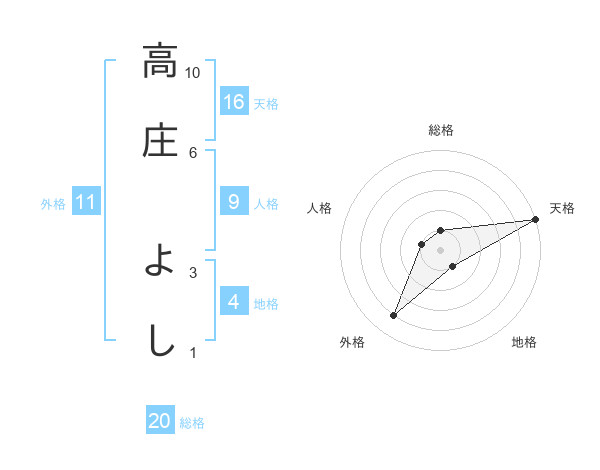 高庄 よしさんの天格は16画の5点!