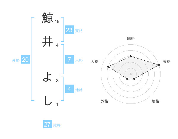 鯨井 よしさんの天格は23画の5点!