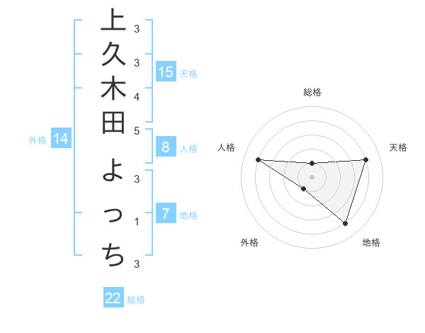 上久木田 よっちさんを姓名の画数から五運を鑑定