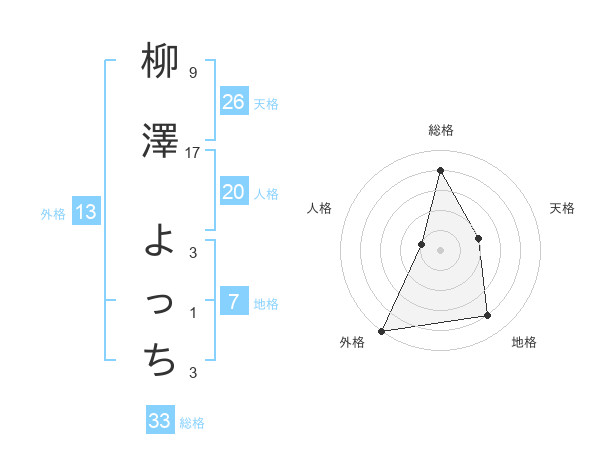 柳澤 よっちさんの総格は33画の4点!