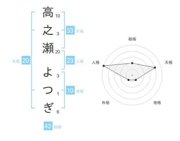 高之瀬 よつぎさんの総格は43画の2点