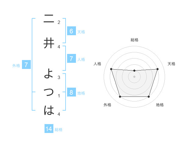二井 よつはさんの天格は6画の4点!