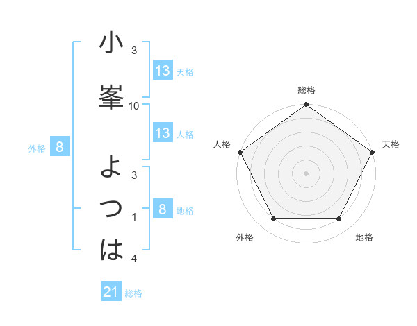 小峯 よつはさんを姓名の画数から五運を鑑定