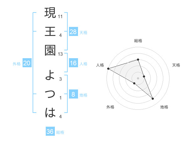 現王園 よつはさんを姓名の画数から五運を鑑定