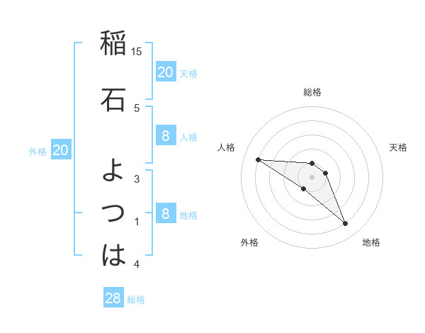稲石 よつはさんの総格は28画の1点!
