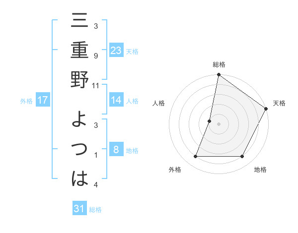 三重野 よつはさんの総格は31画の5点