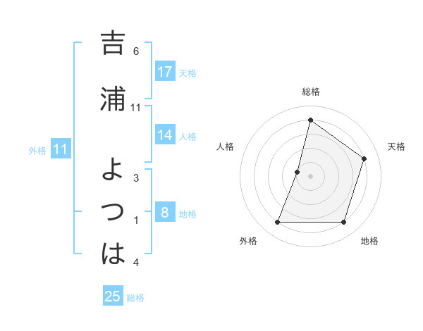 吉浦 よつはさんの天格は17画の4点!