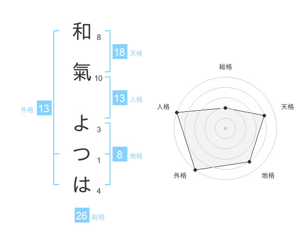 和氣 よつはさんの天格は18画の4点!
