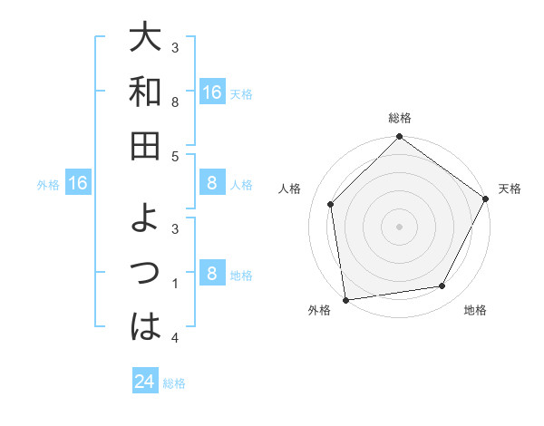 大和田 よつはさんを姓名の画数から五運を鑑定