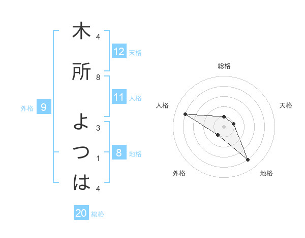 木所 よつはさんの総格は20画の1点!