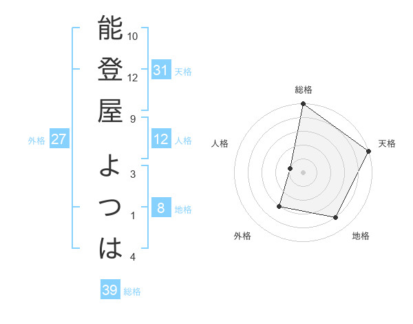 能登屋 よつはさんの総格は39画の5点