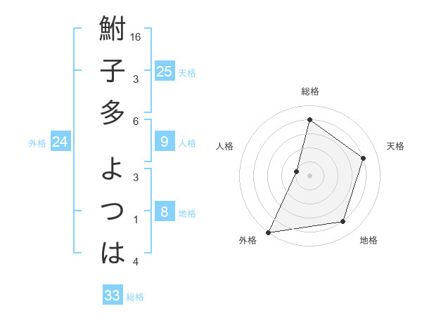 鮒子多 よつはさんを姓名の画数から五運を鑑定