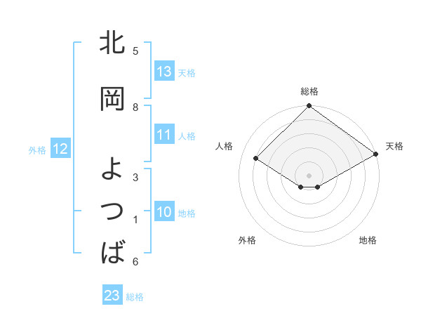 北岡 よつばさんを姓名の画数から五運を鑑定