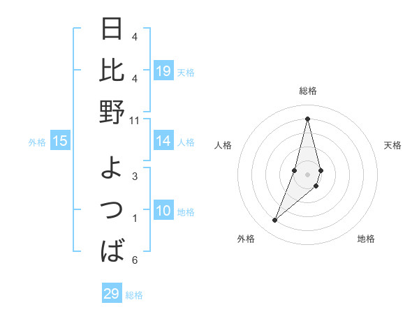 日比野 よつばさんを姓名の画数から五運を鑑定