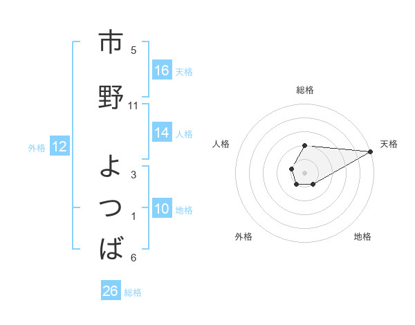 市野 よつばさんの総格は26画の2点!