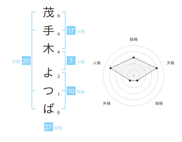茂手木 よつばさんを姓名の画数から五運を鑑定