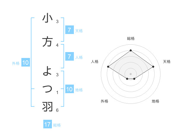 小方 よつ羽さんを姓名の画数から五運を鑑定