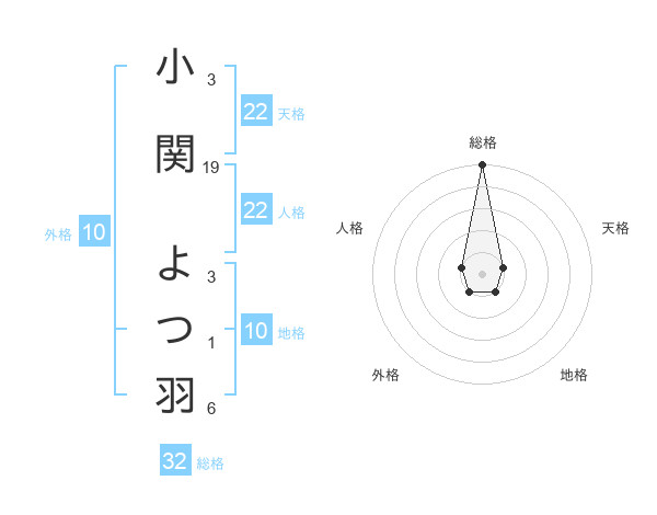 小関 よつ羽さんを姓名の画数から五運を鑑定
