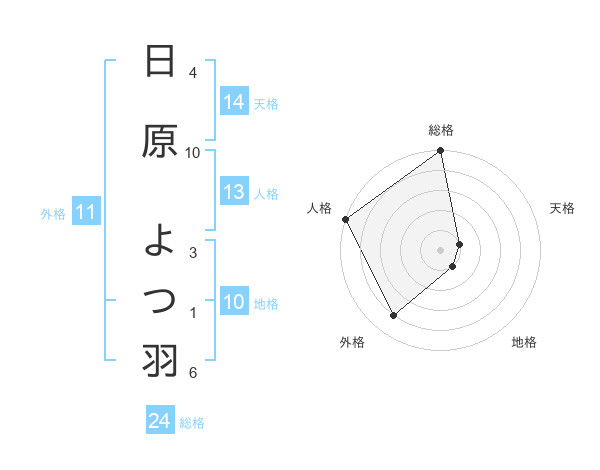 日原 よつ羽さんを姓名の画数から五運を鑑定