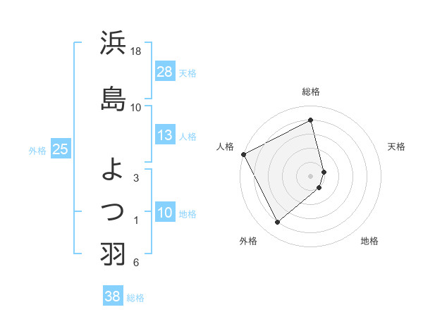 浜島 よつ羽さんの総格は38画の4点