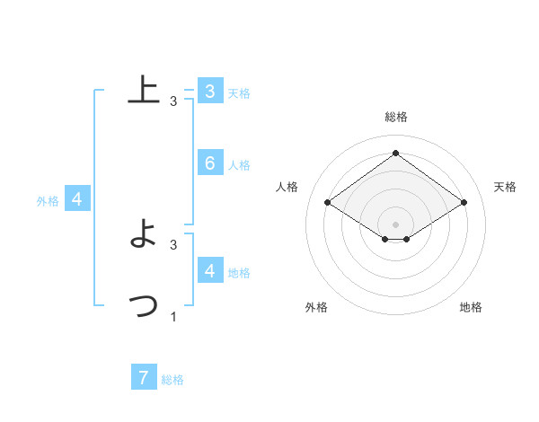 上 よつさんの総格は7画の4点!