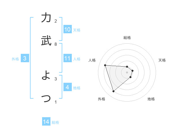 力武 よつさんの総格は14画の1点!