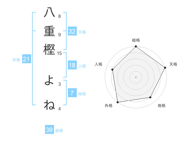八重樫 よねさんを姓名の画数から五運を鑑定