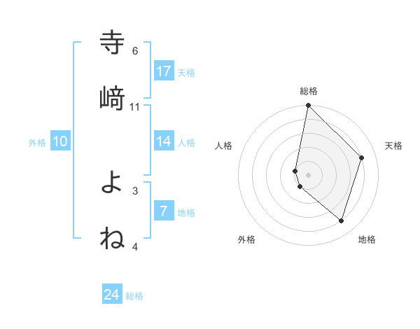 寺﨑 よねさんの総格は24画の5点!