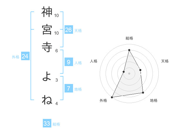 神宮寺 よねさんの総格は33画の4点!