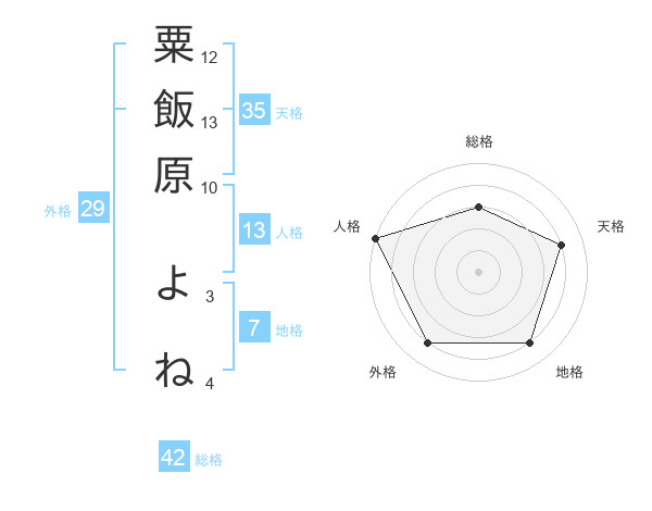 粟飯原 よねさんの総格は42画の3点!