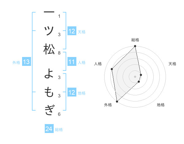 一ツ松 よもぎさんの外格は13画の5点!