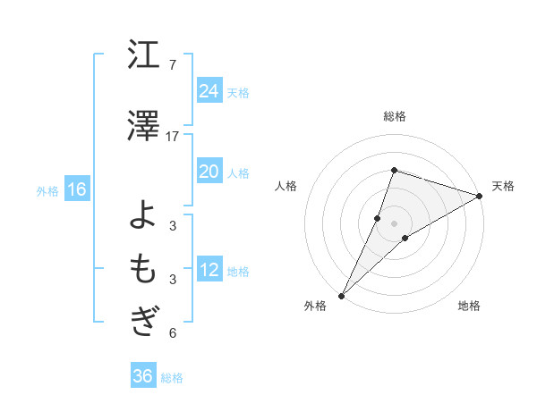 江澤 よもぎさんを姓名の画数から五運を鑑定