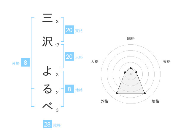 三沢 よるべさんを姓名の画数から五運を鑑定