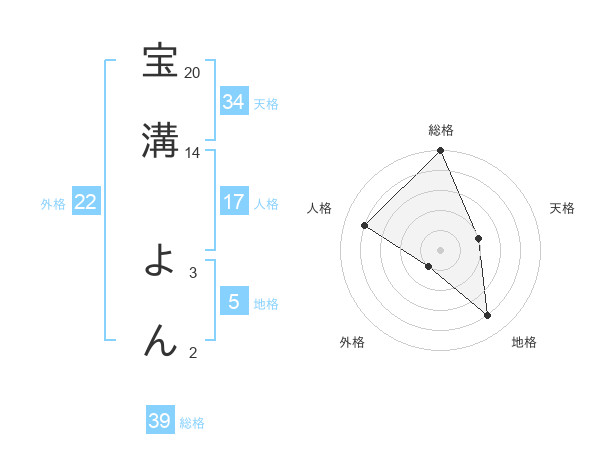 宝溝 よんさんの総格は39画の5点!