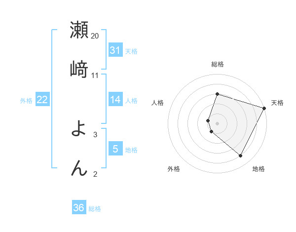 瀬﨑 よんさんを姓名の画数から五運を鑑定