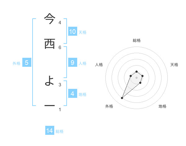 今西 よーさんの天格は10画の1点!