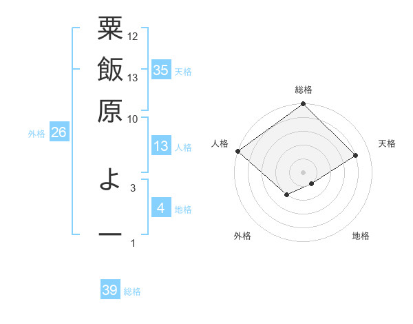 粟飯原 よーさんの総格は39画の5点!