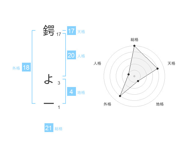 鍔 よーさんの天格は17画の4点!