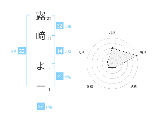 露﨑 よーさんを姓名の画数から五運を鑑定