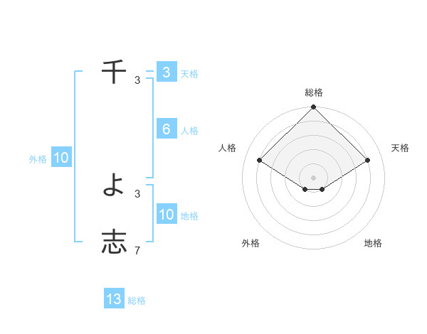 千 よ志さんの総格は13画の5点!
