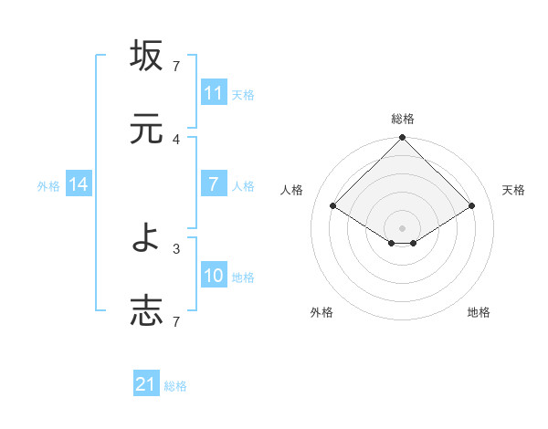 坂元 よ志さんを姓名の画数から五運を鑑定