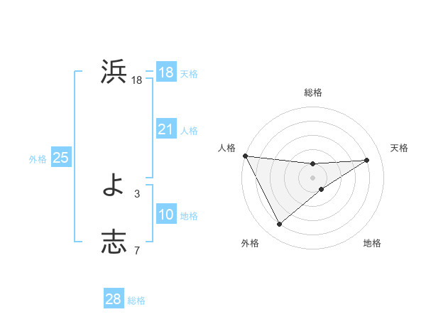 浜 よ志さんの天格は18画の4点!