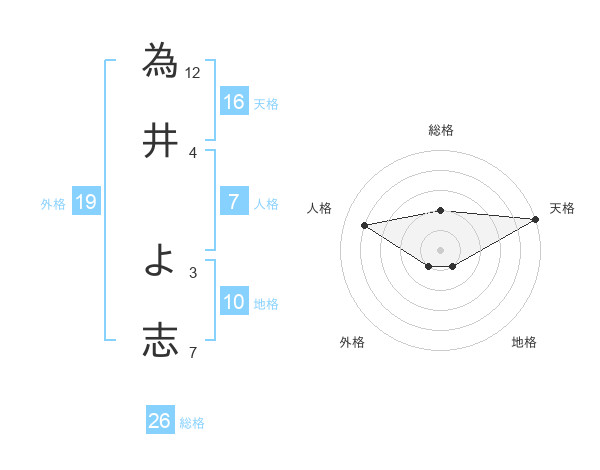 為井 よ志さんの天格は16画の5点!
