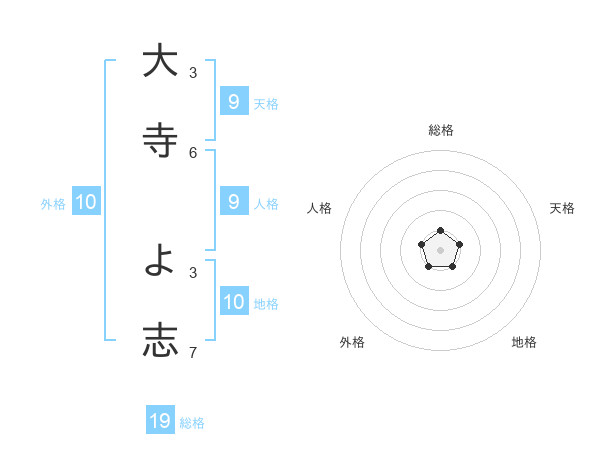 大寺 よ志さんの総格は19画の1点!