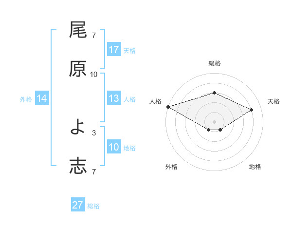 尾原 よ志さんを姓名の画数から五運を鑑定