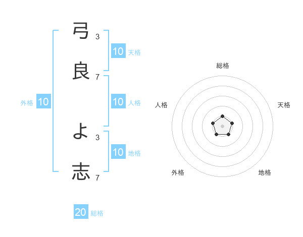 弓良 よ志さんの総格は20画の1点!