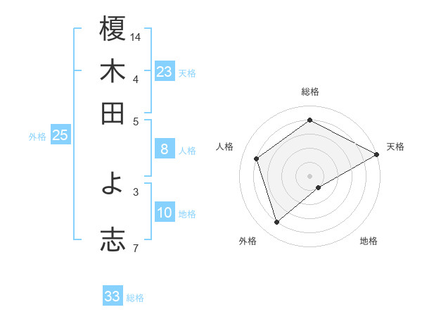榎木田 よ志さんの天格は23画の5点!