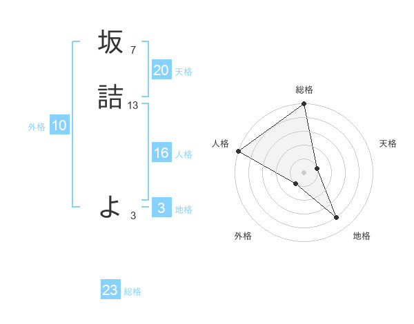 坂詰 よさんの総格は23画の5点!
