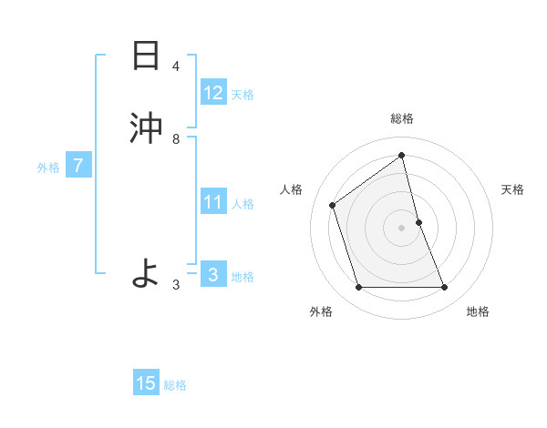 日沖 よさんの総格は15画の4点!