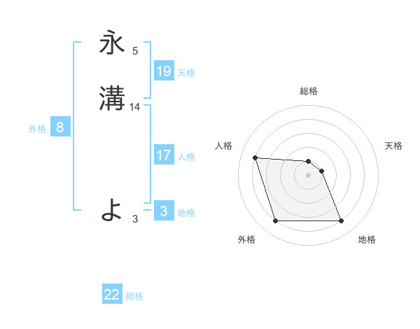 永溝 よさんの総格は22画の1点!